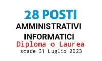 Sono disponibili 28 posizioni per personale amministrativo e informatico rivolte a diplomati e laureati.