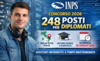 Concorso pubblico 2026: 248 posti per diplomati all’INPS