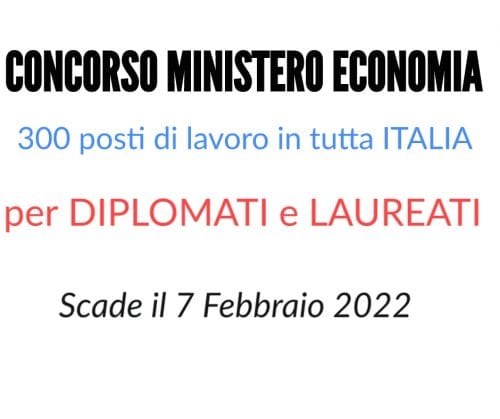 Nuovi concorsi pubblici Ministero Economia, sono disponibili concorsi per 300 nuove risorse. La legge di bilancio ha autorizzato il Ministero